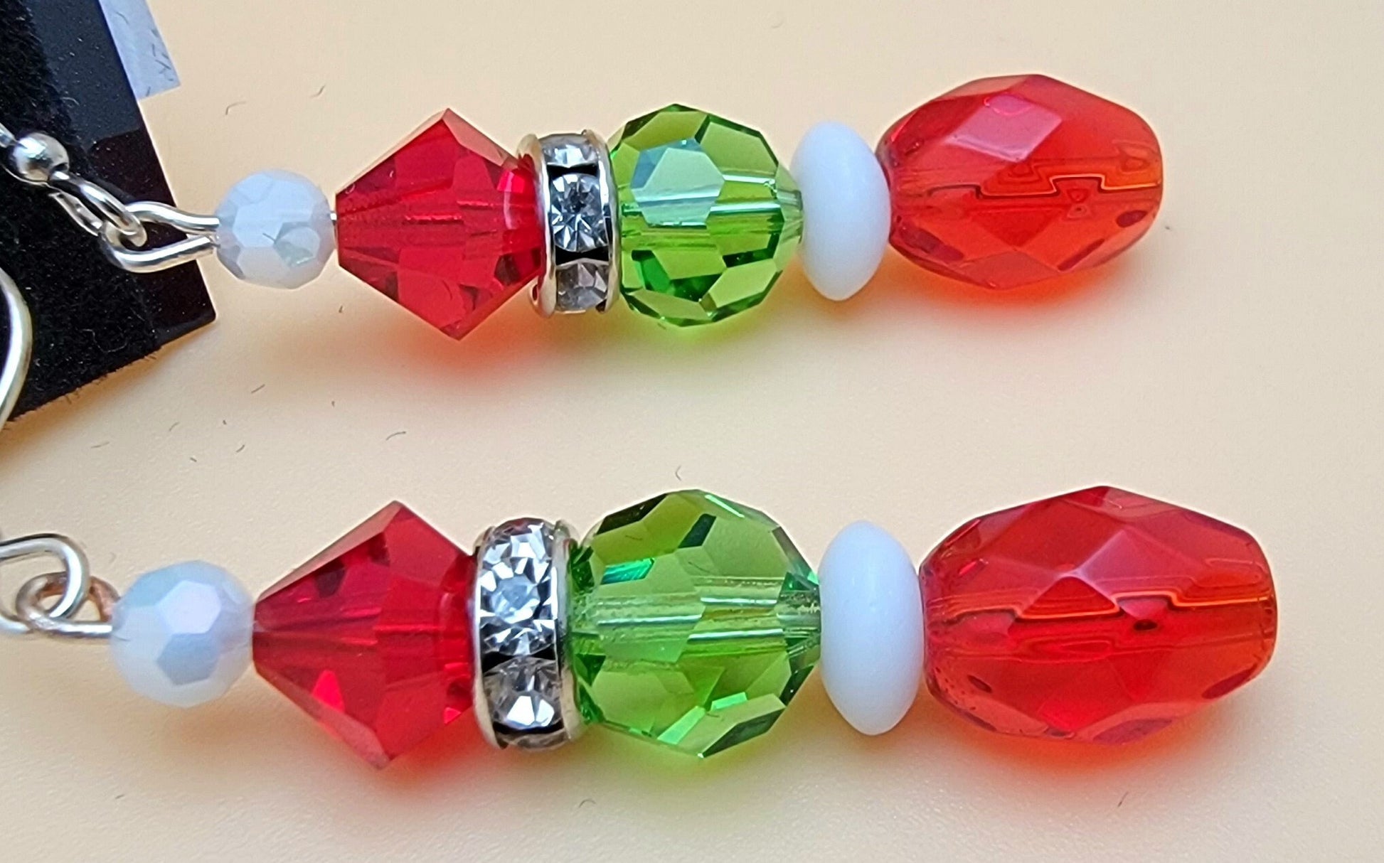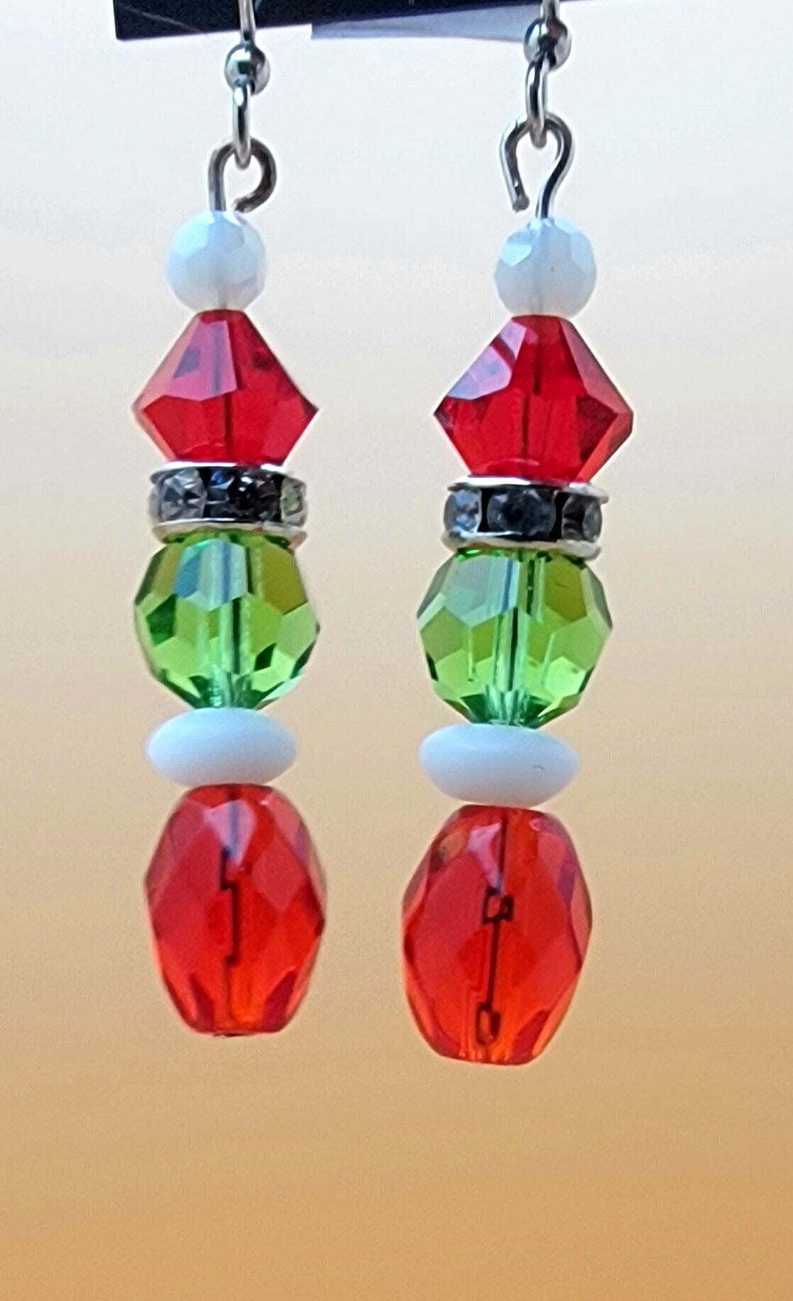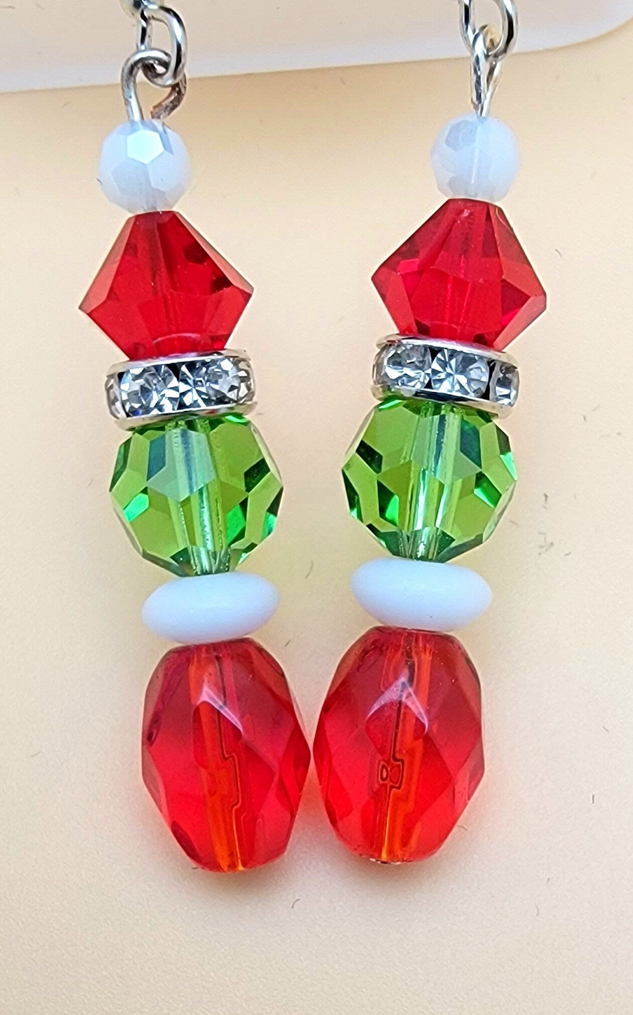 These Crystal Grinch earrings are anything but mean! Add some sparkle and personality to your look with these festive earrings. They dangle approximately 1 1/2 inches from the ear wire, which is a simple silver loop. Let these earrings attract attention and show your holiday spirit!