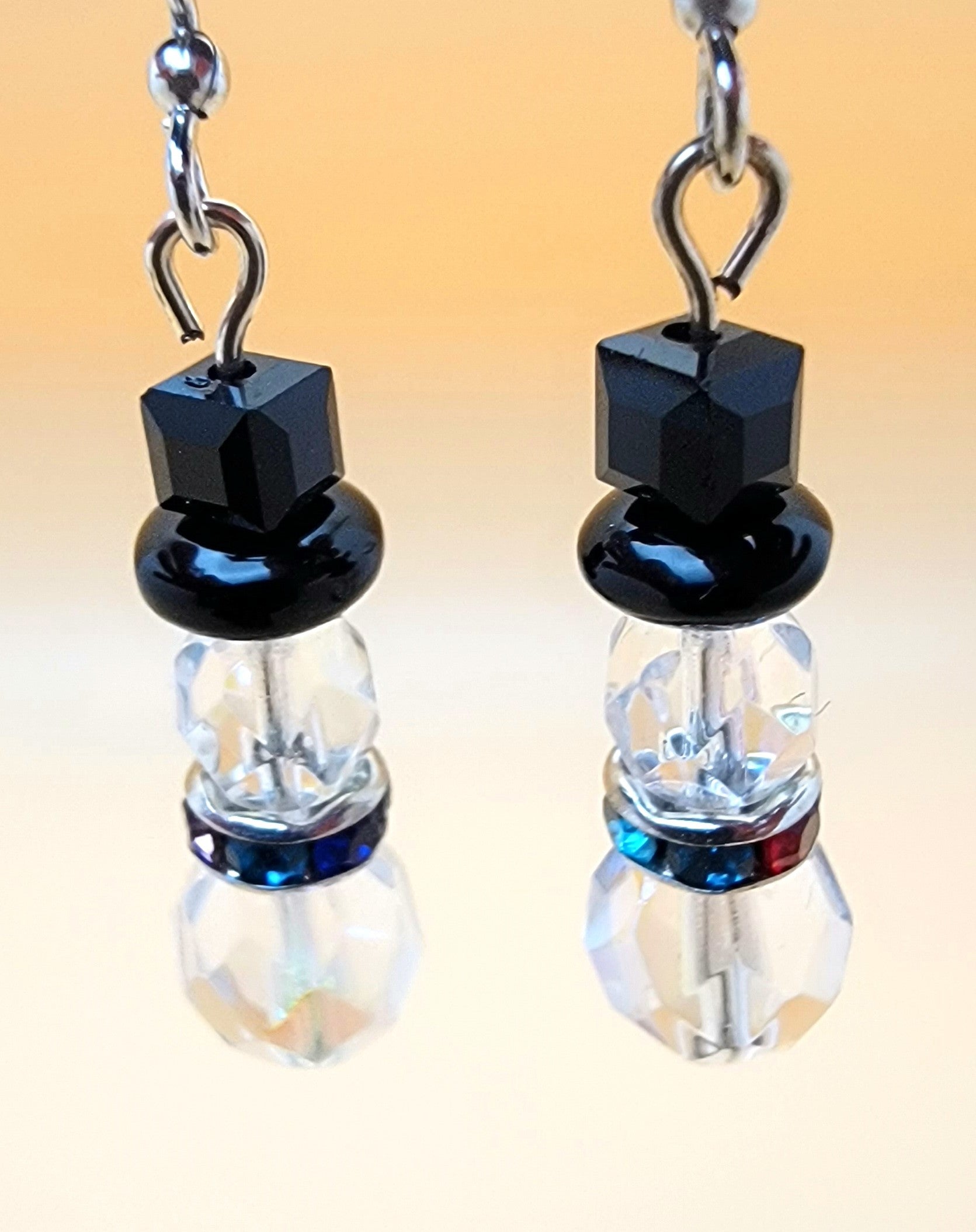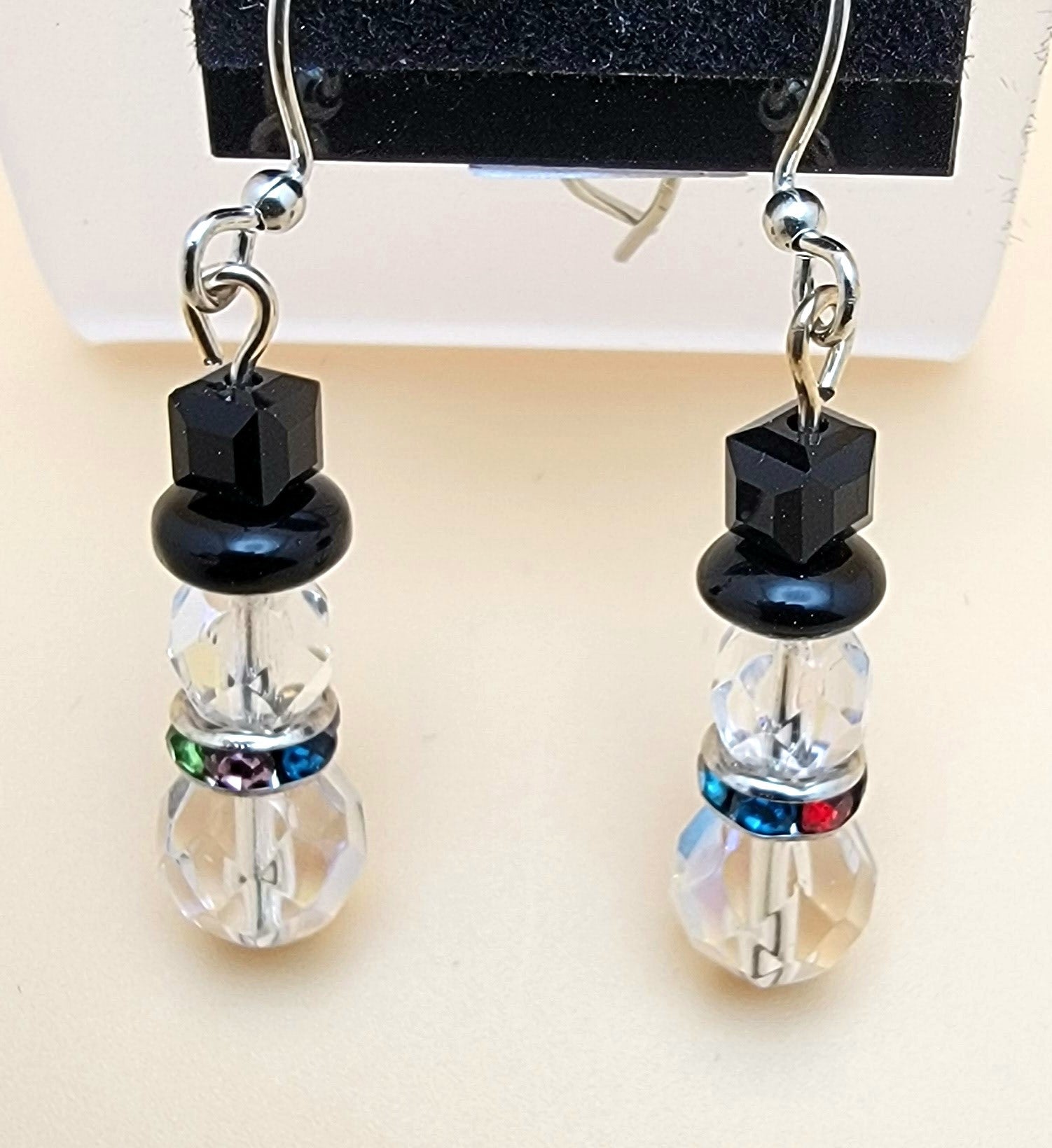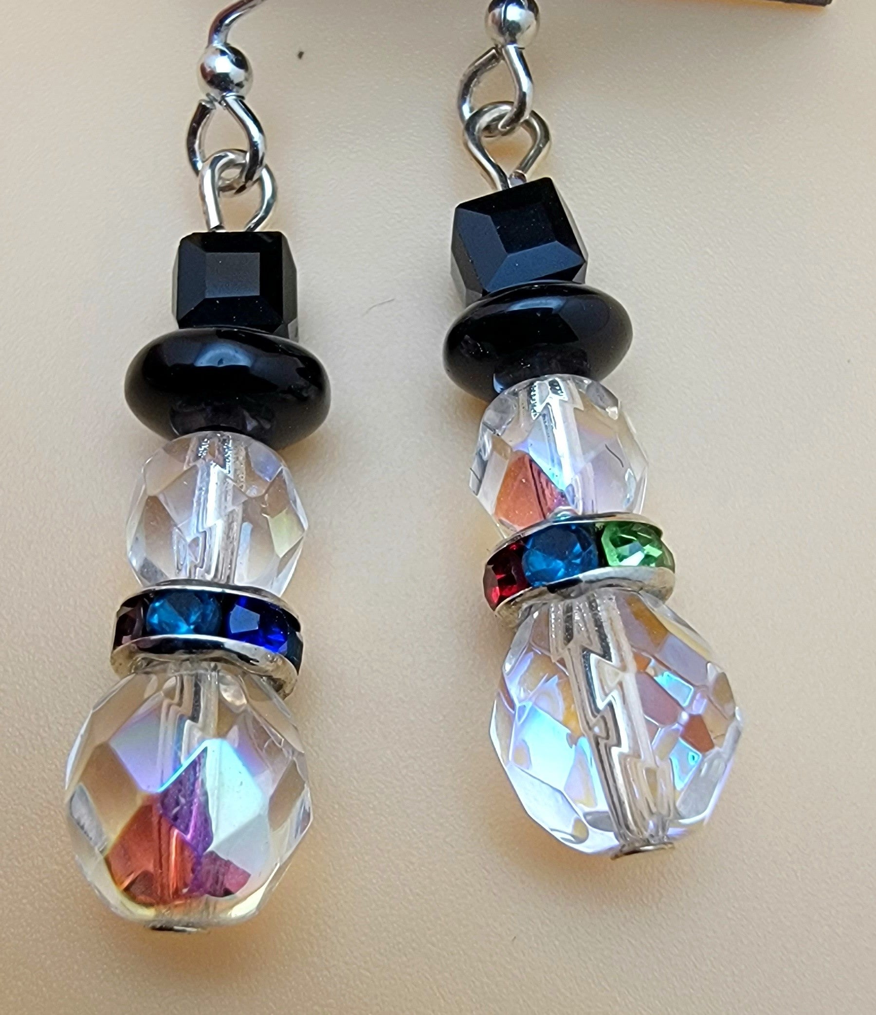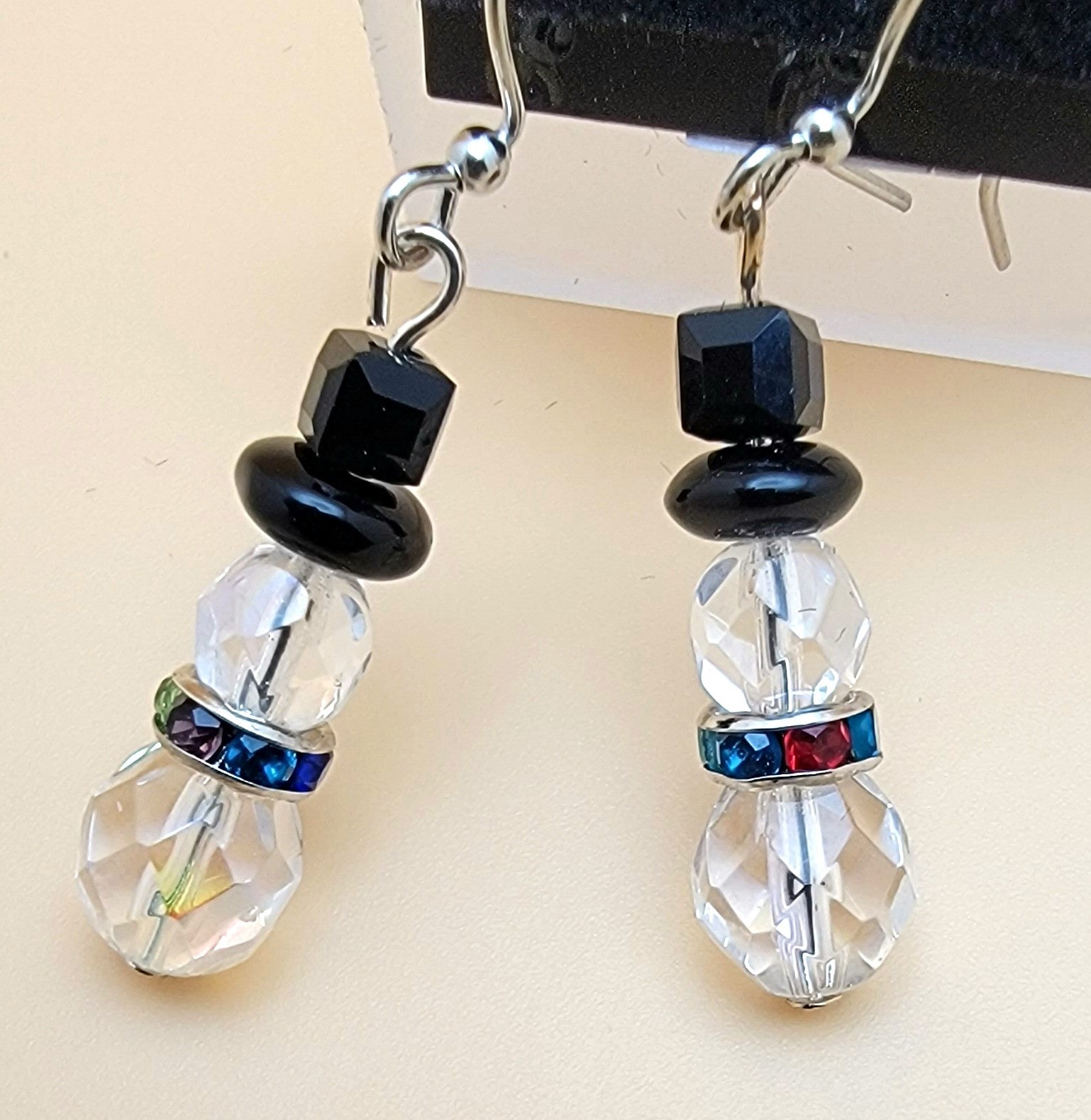 Experience the magic of a winter wonderland with these stunning crystal snowman earrings! Their cute and sparkly appearance will add a touch of fun to any outfit. Featuring a beautiful multicolored rondelle scarf adorned with silver crystals. The earrings dangle approximately 1" from the ear and the fishhook ear wires come in a matching accent color to complete the look. Add these to your jewelry collection and let it snow with style!