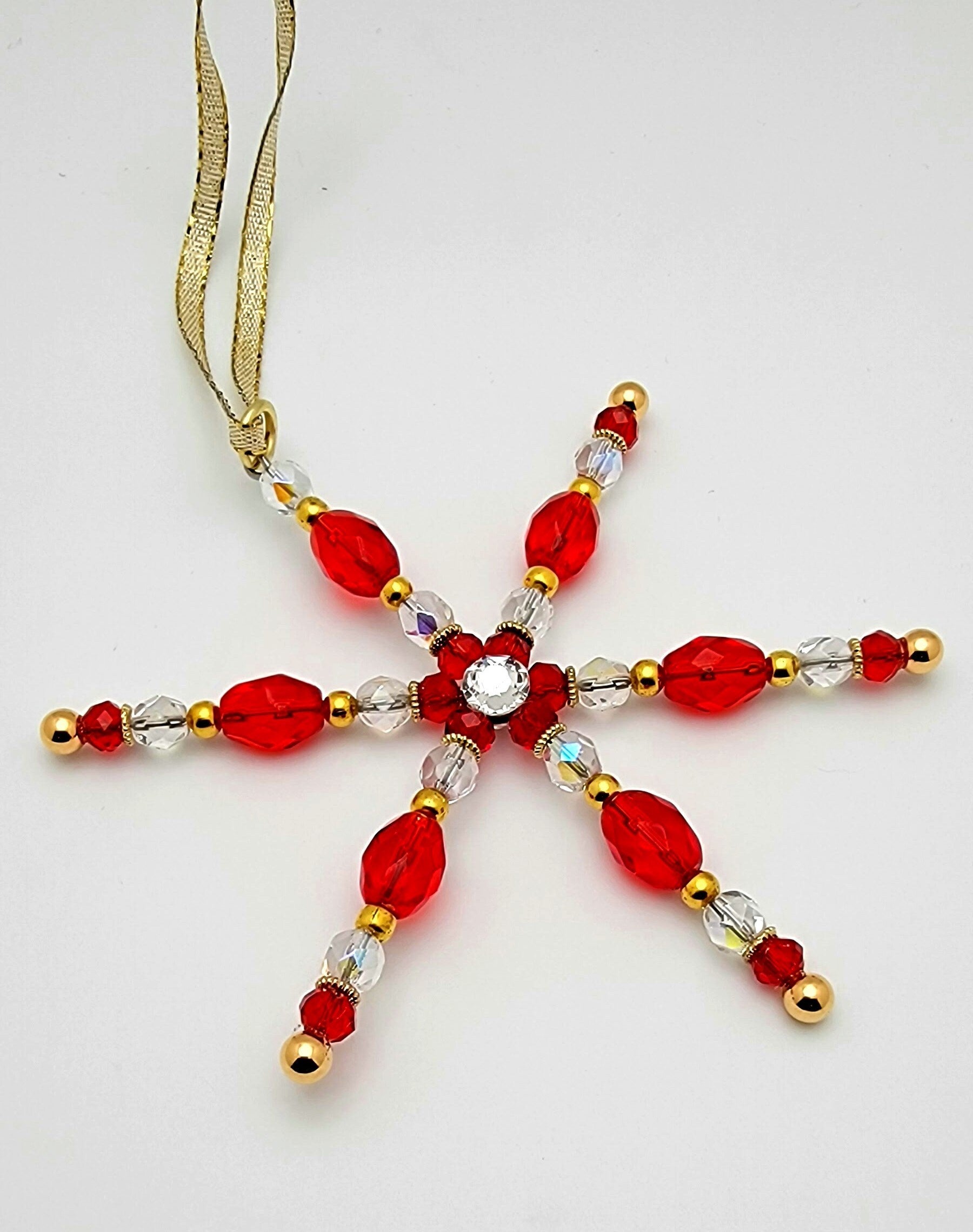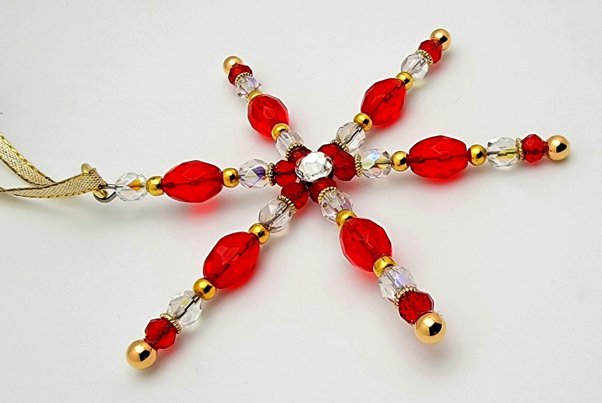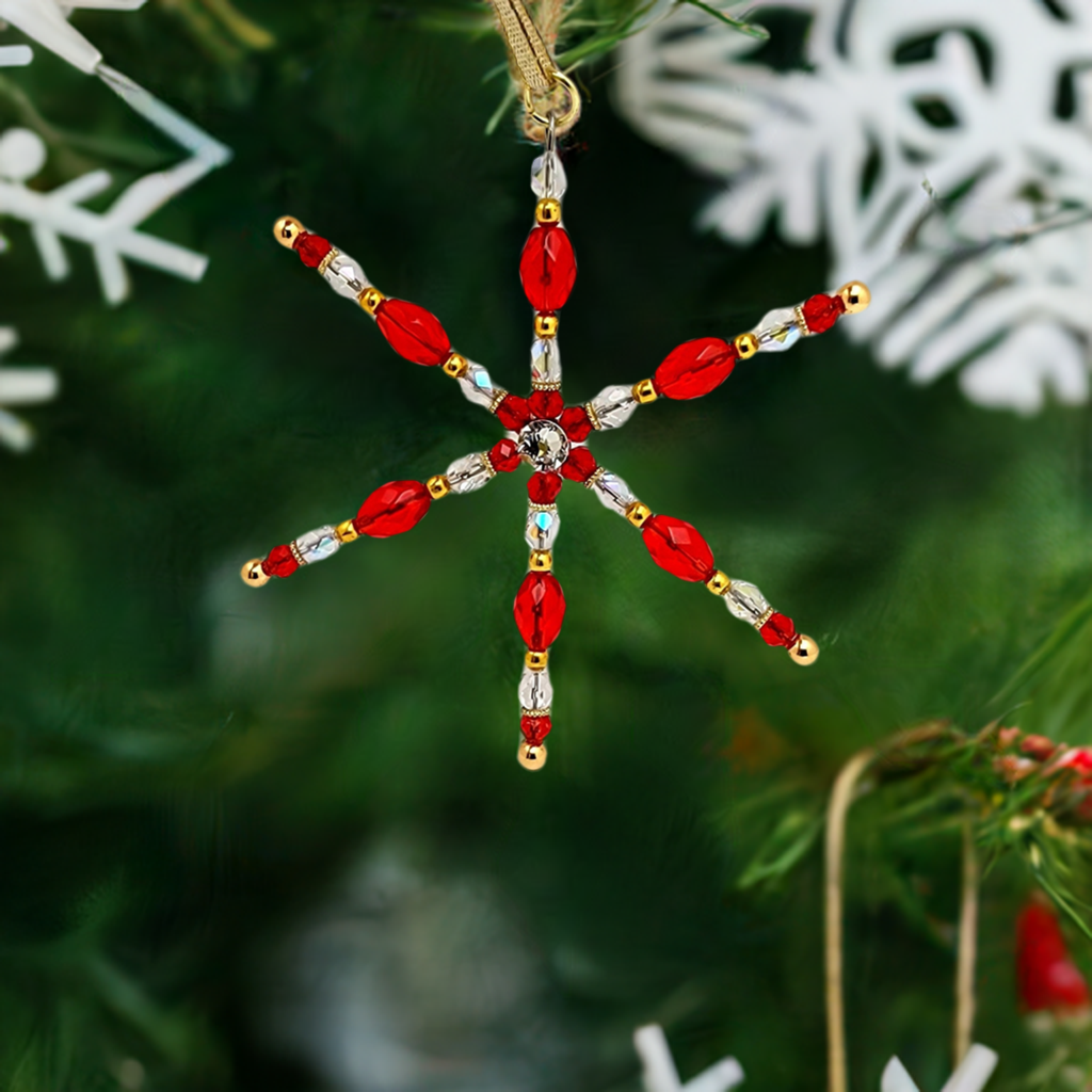 Experience the timeless elegance of this Red & Gold Star Ornament. The sparkling clear and red faceted crystals will catch the light beautifully, adding a touch of glamour to your tree. The golden accents perfectly complement the red, creating a stunning and sophisticated look. The center crystal is a genuine Swarovski crystal, reflecting the highest quality. Measuring approximately 4" in size, this ornament can also double as a radiant suncatcher. Elevate your holiday decor with this enchanting ornament!
